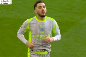 比赛第76分钟,曼城做出换人调整,送出两个助攻的谢尔基被替换下场。被换下时,谢尔基疑似是将自己的护腿板取下来塞在了球裤边缘,漏出了上面的一角,而他露出来的部分显然是一个人的面部。
