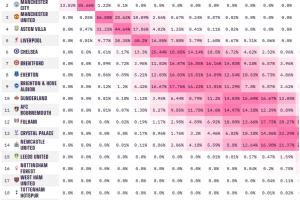 本轮开始前,opta预测阿森纳有97.6%概率夺冠,阿森纳1-2不敌伯恩茅斯后,opta预测阿森纳夺冠概率为93.5%。