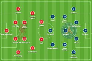官方阵型4222,伊萨克和埃基蒂克双前锋,维尔茨左边前卫,索博右边前卫,麦卡利斯特、赫拉芬贝赫双中场。